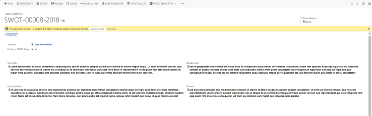 Notify.add ("This record is locked. To update the SWOT Analysis, please Clone this Record",