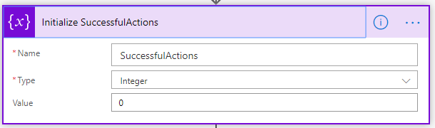 7. Initialize SuccessfulActions – we initialize a new integer variable called SuccessfulActions that we’ll use in Step 9 and Step 10 below, ensuring the default value is set to 0