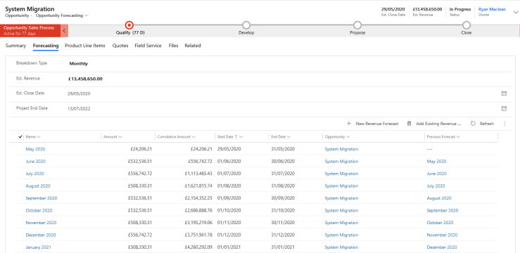 | 7 | cumulativeAmount | Float | Used for calculating the cumulative amount of revenue to date for the forecast |