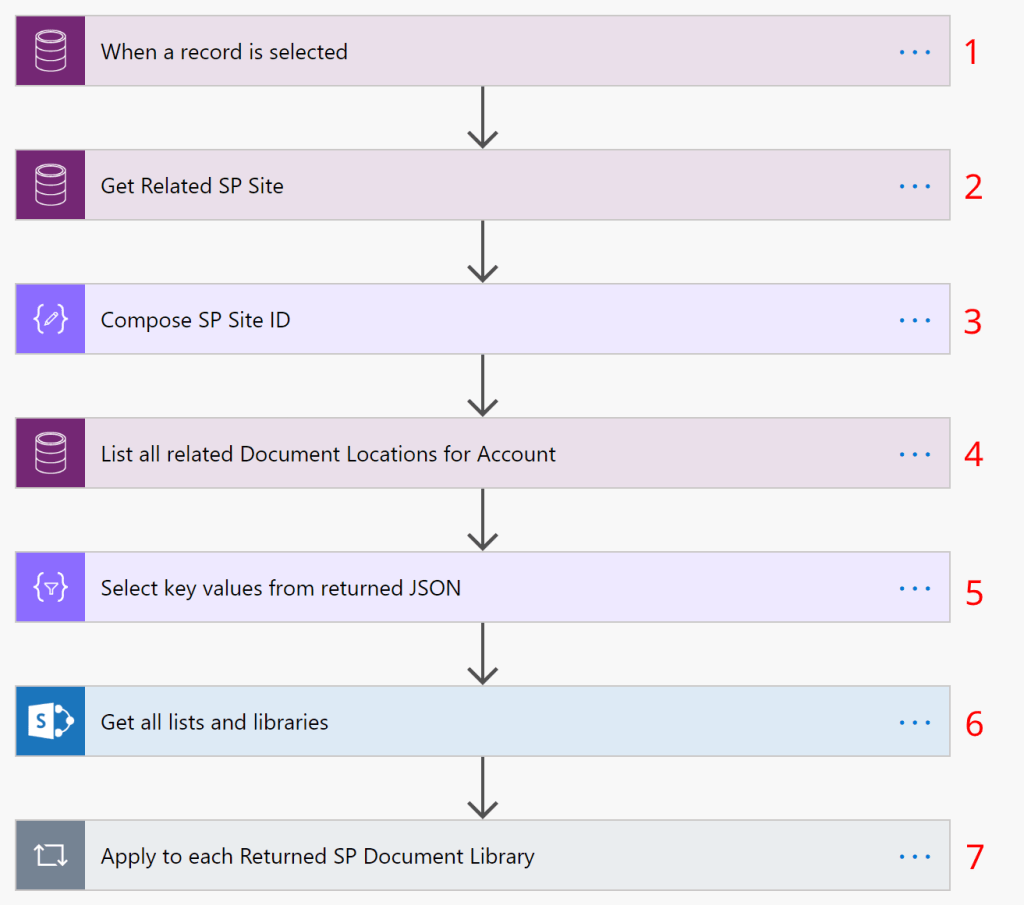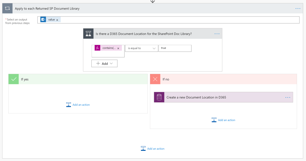 6. Apply to Each Document Location – we’ll use an Apply to Each control to loop through each Document Location we returned in Step 4