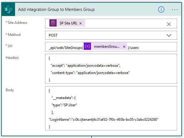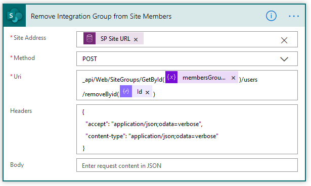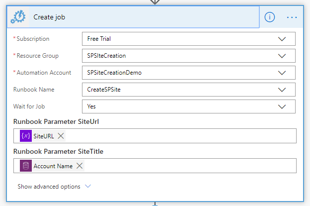 - Site Address – we use the SiteCollectionUrl output from the compose step 12 above